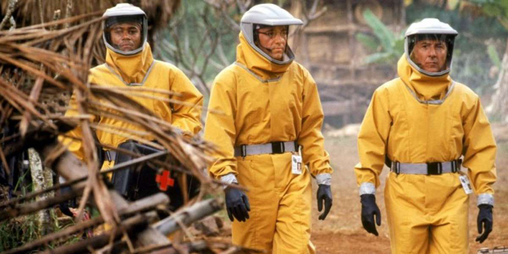 Before Contagion and eventually COVID, this was the disease-as-disaster movie that scared the shit out of people. It has it all: a cute monkey as pathogen vector, old mate from Grey’s Anatomy as a burnt-out punk loser, Dustin Hoffman as the man of the hour and He-Who-Shall-Not-Be-Named in an admirable supporting role. Oh, and the threat of nuclear oblivion. Gee, how relatable. Watch the trailer here.