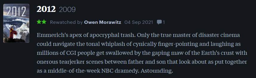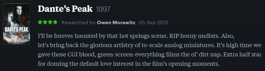 Follow me over on Letterboxd for more real-time film reviews, lists, and lukewarm takes.