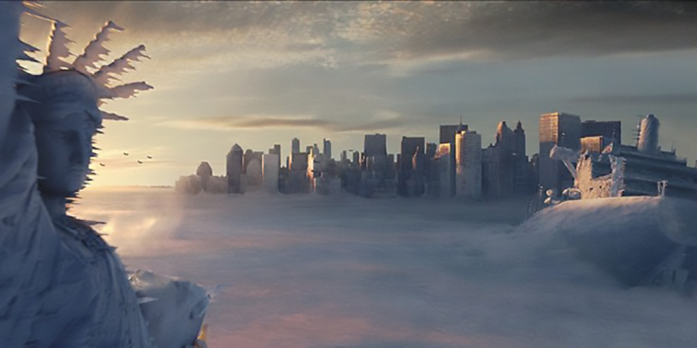 Synopsis: “After years of increases in the greenhouse effect, havoc is wreaked globally in the form of catastrophic hurricanes, tornadoes, tidal waves, floods and the beginning of a new Ice Age. Paleoclimatologist, Jack Hall tries to warn the world while also shepherding to safety his son, trapped in New York after the city is overwhelmed by the start of the new big freeze.”