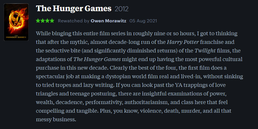 Follow me over on Letterboxd for more real-time film reviews, lists, and lukewarm takes.