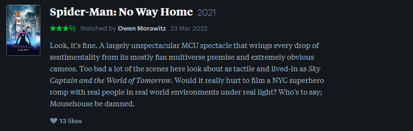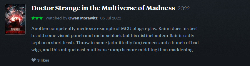 Check out my MCU Rewatch list over on Letterboxd.