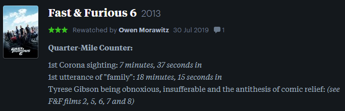 Not the worst one but it is the most forgettable. So much so that I’m struggling to recap anything that happens… I think the main non-Vin Diesel dude has an accent? And there are Japanese e-girls at some point? I don’t know. Hard pass.