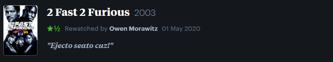 Follow me over on Letterboxd for more real-time film reviews, lists, and lukewarm takes.
