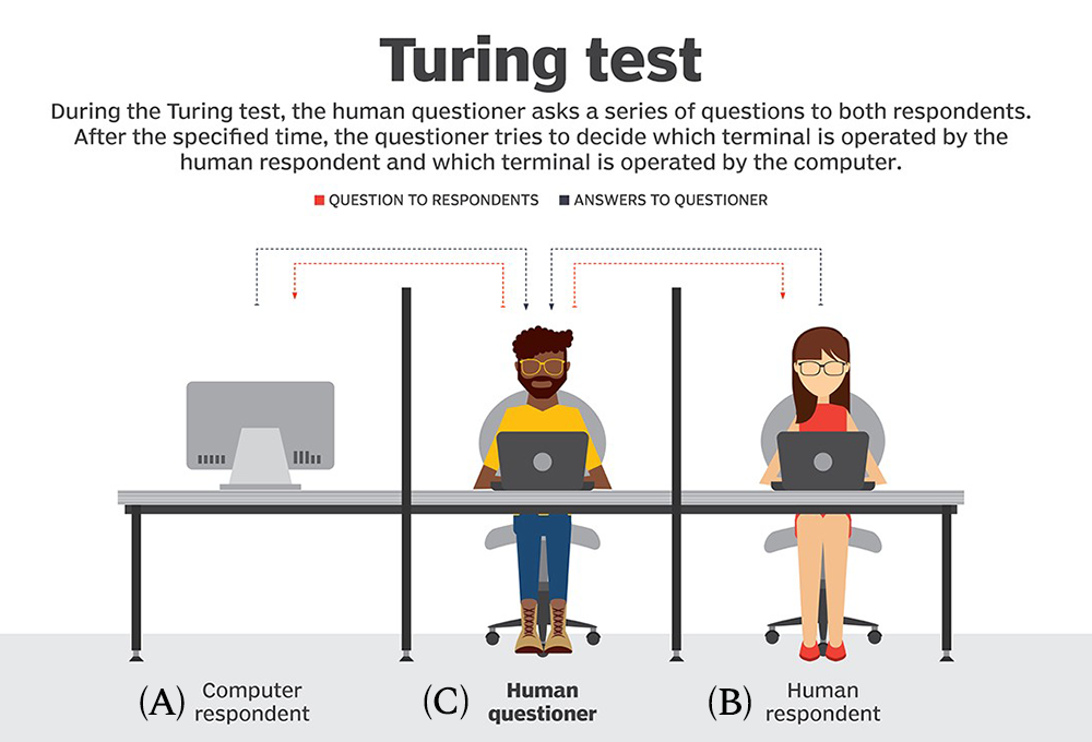 Proposed in 1950 by English mathematician and early computer scientist Alan Turing, the Turing test, or “imitation game” as it’s known, works like this: