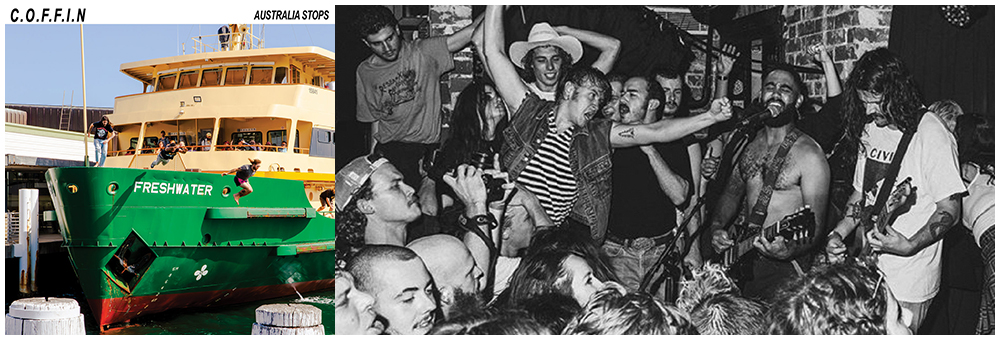 Australia Stops, the fifth studio album from Sydney hard rockers C.O.F.F.I.N, is finally out now through Damaged Record Co., and folks, it’s a fucking scorcher. It’s chock full of high-voltage guitars, pounding rhythms, and snarling hooks that pay homage to Australia’s half-century punk lineage. The LP comes off the back of a massive year of touring across Europe, the UK, the US, and Australia and was recorded at The Pet Food Factory studio with producer Jason Whalley (Frenzal Rhomb).